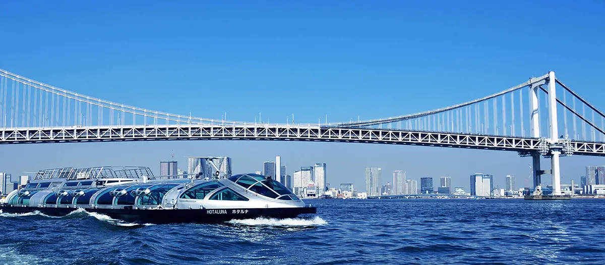 Water buses operate on a fixed schedule between sightseeing spots in Tokyo, including Asakusa, Odaiba, and Toyosu. Travel to your destination while viewing the Tokyo cityscape from a different waterborne perspective.