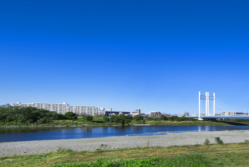 The Tama River is a 138-km-long Class A river that runs between Tokyo and Kanagawa Prefecture. It provides a spacious place in the crowded metropolis where one can relax and feel the gentle caress of the wind. The trails that run beside the river are favorites of many runners and cyclists.