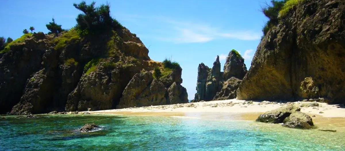 Horaine Beach is a small sandy beach on the remote island of Hahajima. Its white sand is great for sunbathing, and its clear, shallow waters full of tropical fish are perfect for swimming and wading. Near the beach is a coral reef that also makes it an ideal snorkeling spot. Cliffs and rock formations tower at the edges of the beach.