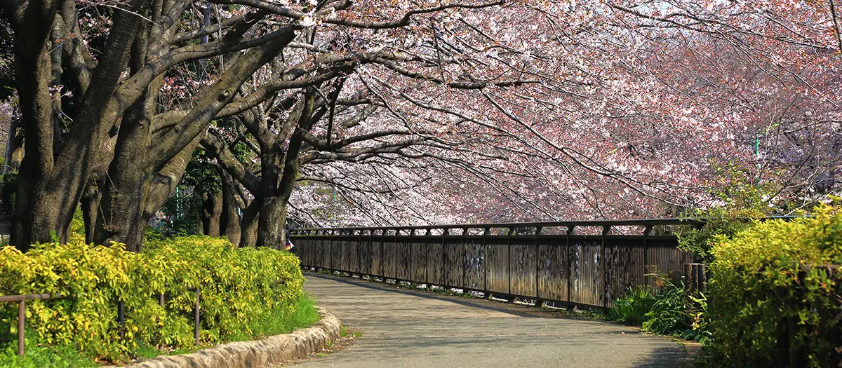 After a tennis match at one of the rental tennis courts, admire the cherry blossom trees from the waterside terrace along Senkawa River running through the park.
