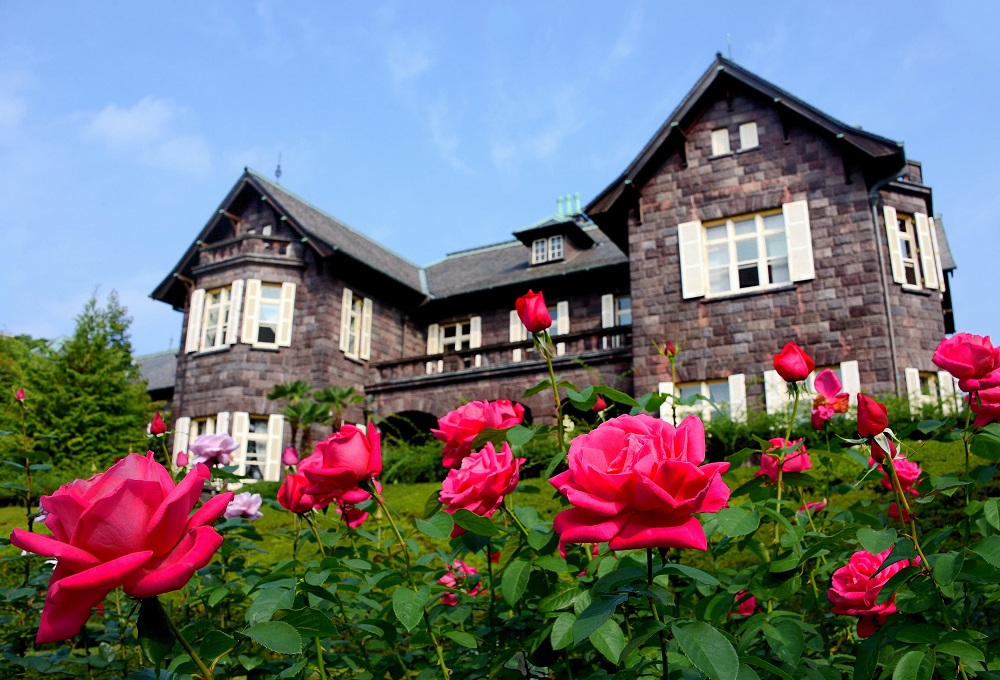 Along with the stately Western-style house designed by Josiah Conder during the Taisho era, the Western-style garden features approximately 200 rosebushes of 100 different varieties, showing a magnificent harmony with the mansion. Rose varieties include the Maria Callas, and also the Royal Princess, which is dedicated to Japan's Princess Aiko.