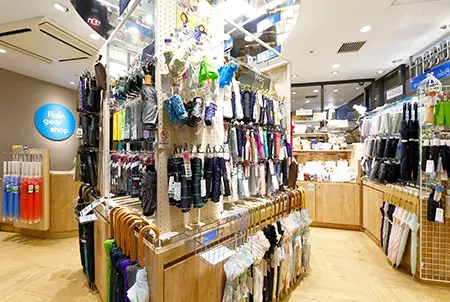 Lusso is a rain goods store by JR Tokyo Station outside the ticket gates of Marunouchi Underground North Gate. They have umbrellas decorated with the Suica* penguin, so you can take a piece of Tokyo home as a souvenir. There are a few items with the penguin, including a folding umbrella, a standard umbrella, and a folding umbrella case. They also sell other helpful rain goods. There is a folding umbrella that can pack down in only three seconds and another made with recycled textile scraps. Umbrellas leave your feet exposed, but Lusso also has you covered (literally). They have shoe covers in a variety shapes, including a cover for heels which won a Good Design Award.