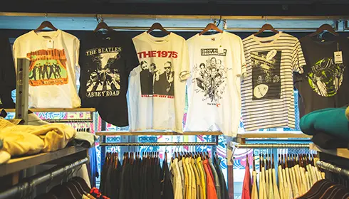 The clothing selection skews toward casual street fashions with an emphasis on men's wear. Lovers of subculture will appreciate affordable T-shirts printed with popular band names, anime characters, and movie titles. Upstairs, you'll find polo shirts, jeans, and more graphic tees. The staff is well-versed in vintage and can introduce you to authentic retro treasures such as an Adidas track jacket made in France in the 1970s.