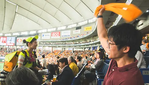 Another feature of Japanese baseball is its cheering styles, which reflect each team’s identity. Cheering sections lead chants and wave flags from the outfield stands, so be sure to get a seat there for more action. For a more game-oriented experience, infield seats offer a calmer atmosphere while still capturing the crowd’s energy. Whenever the Yomiuri Giants home team scores, fans swing orange towels over their heads while singing their “VIVA GIANTS” chant. The stadium’s lighting system also adds to the spectacle, flashing with each score, so grab a beer, cheer at the top of your lungs, and experience the thrill of Japanese baseball as the stadium comes alive.