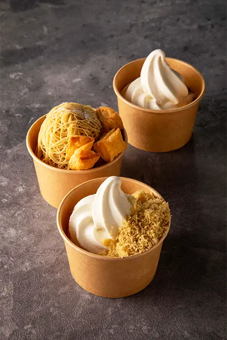 Ichicabo’s menu changes with the season. They select one seasonal fruit - such as kiwi, mango, cherry, or watermelon - and offer three varieties from Japan and around the world that demonstrate the sweetness and flavor of naturally ripe fruit. The signs and lighting of the store change color depending on the seasonal fruit.