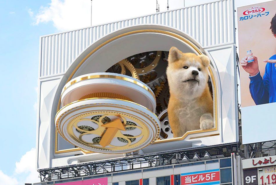 An Akita dog has been galivanting between buildings around Shibuya Station since July 2022. The three-dimensional dog is the creation of Hit Co., Ltd., the advertising company that operates the eight digital billboards through which the dog bounds.