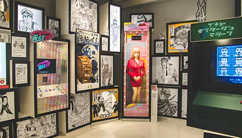 Kochikame Museum, which opened in March 2025, displays materials related to this beloved series. The museum is designed as if Ryo-san decided to build a museum in his own honor on top of the police station where he works. The building's entrance is a recreation of the series' police station, and signs throughout the floors depict Ryo-san running away from his superior officer. This fun, quirky design immerses visitors in the world of Kochikame and its main character.
