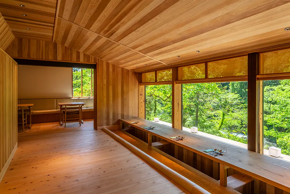 Imagine sitting in a restaurant crafted with locally-sourced wood. Earthy aromas scent the air as you dine on a French course lunch prepared from local produce. Through large windows, you are granted peaceful views of the Tama River flanked by greenery. Welcome to Satologue. Started in May 2024, this sustainability-focused initiative is refurbishing vacant village houses in western Tokyo to help revitalize the region and promote tourism. Presently, Satologue’s restaurant—open for lunch only—and firewood sauna are open, with accommodation options coming in 2025. In addition to meals, the facility also offers a guided 15-minute field walking course where you can explore its homegrown produce nourished by a tributary of the Tama River. Observe tomatoes, eggplant, mushrooms, and even a small wasabi field. Please note that reservations are required for the restaurant and sauna.