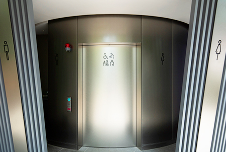 Ban designed with cleanliness and safety in mind—and the glass walls of his creations allow you to ascertain both with a glance. When not in use, the walls are transparent. Once the door is locked, the glass becomes opaque, providing complete privacy.