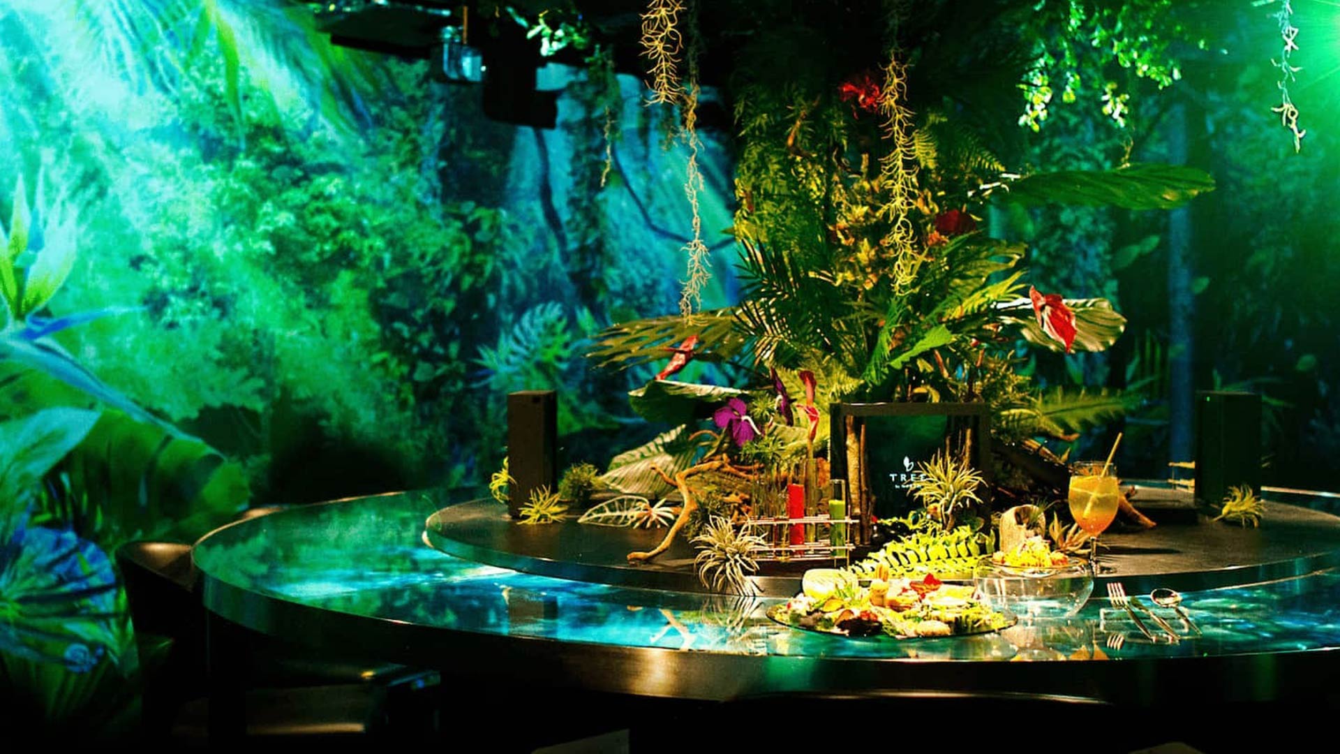 NAKED, INC., a digital art collective known for its work at Kyoto's Nijo Castle and Tokyo's Kanda Shrine, used its expertise to create this cafe combining art and food. Forest-like decorations mirror the seasons, creating a delightful setting in which to enjoy healthy meals. (Takeout okay.) Dinnertime involves VR, projection mapping and music. Indeed, meals turned artwork with projection mapping are a sight to see.