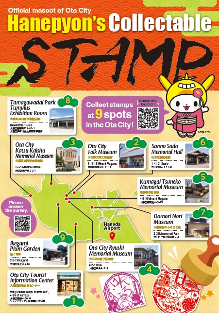 9 locations througout Ota City feature unique stamps designs. They are ideal for collecting special souvenirs and remembering your journey.