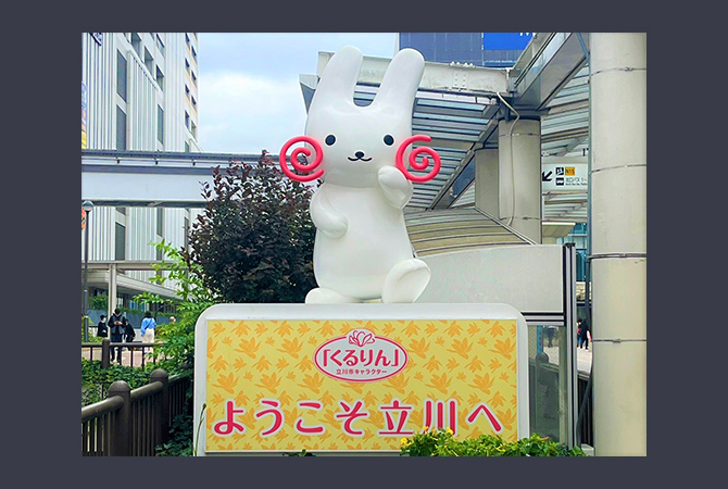 Welcome Board design featuring Kururin, the Tachikawa City Character