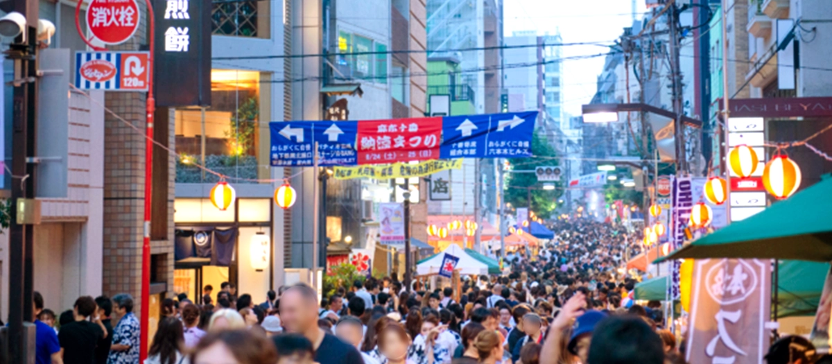 For more than 50 years now, the Azabu-Juban Shopping Arcade, the pillar of this energetic neighborhood, has hosted the Azabu-Juban Noryo Festival. "Noryo" means "cool of the evening," and noryo festivals are a Japanese summer tradition.