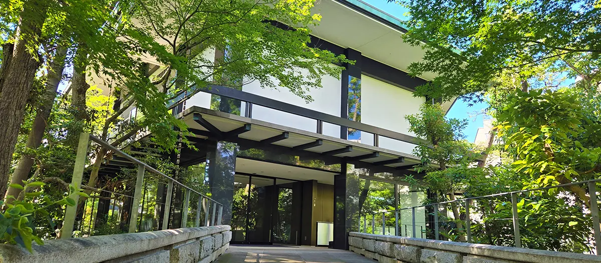 Ebara Hatakeyama Museum of Art (former name: Hatakeyama Memorial Museum of Fine Art) opened in 1964. The Ebara Hatakeyama Museum of Art houses many historical tea utensils and works of art. This museum has a total of approximately 1,300 pieces, including 6 national treasures and 33 important cultural properties. Not only that, the gardens and architecture of the Ebara Hatakeyama Museum of Art are also uniquely charming. These fully reflect the worldview of the tea ceremony. When participating in a tea gathering, guests should stroll through the garden to calm and focus their minds before the main event begins. The garden style here is a reproduction of a "roji (露地)," the common name of a garden attached to a tea-ceremony room. Therefore, after entering the garden from the main gate and walking a short distance, you will see the entrance of the museum. The four-and-a-half-tatami tearoom "Seian" in the exhibition space uses wood from an ancient tree from Nara Todaiji Temple in the "tokobashira (alcove post)." The founder, Sokuo Hatakeyama (Issey Hatakeyama 1881-1971) did not install lighting on the ceiling, but instead chose to use decorative silk fabric (made by Tatsumura Art Textiles) with flying cloud patterns shimmering in serene golden hues in order to incorporate the classical Japanese aesthetics “In Praise of Shadows” into modern architecture.