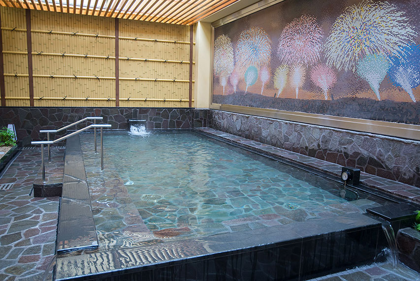 Hisamatsu Yu is a natural hot spring onsen on the north side of central Tokyo with an exceptionally elegant, modern feel. Since it is a public bath, visitors can enjoy these hot springs at an affordable price. The indoor baths have been designed with a special emphasis on light. Big, airy spaces with large, open windows and walls are the hallmark here. There's even a projection mapping installation featuring soothing patterns that will take your relaxation to the next level.