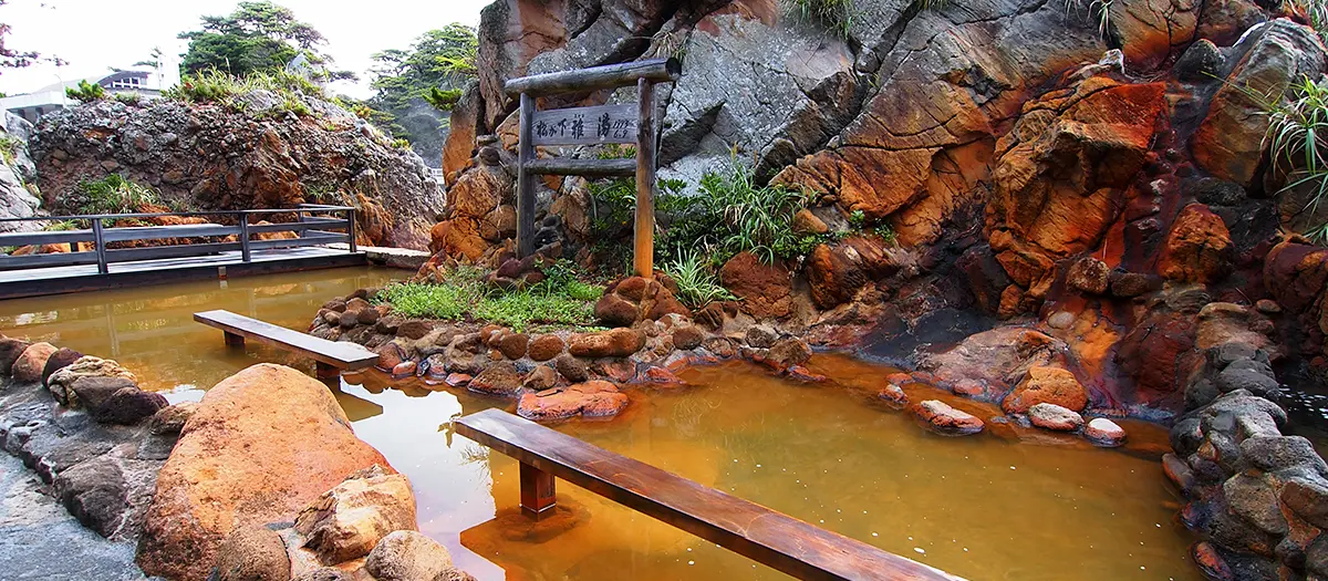 Miyabiyu Hot Spring is a natural hot spring with an ocean and coastline backdrop on Shikinejima Island. The water is sourced from the Jinata Hot Spring and is adjusted to the perfect temperature, no matter the status of the tide. Taking in the view of the sea and coastline while soaking in the water is an exceptional experience. The hot spring is open 24 hours a day, and illuminated at night, so you can even experience the phenomenal view under a starlit sky. Note that this is a mixed-gender bath, so bathing suits are required. For visitors looking for a quick break, there is a relaxing footbath available as well.