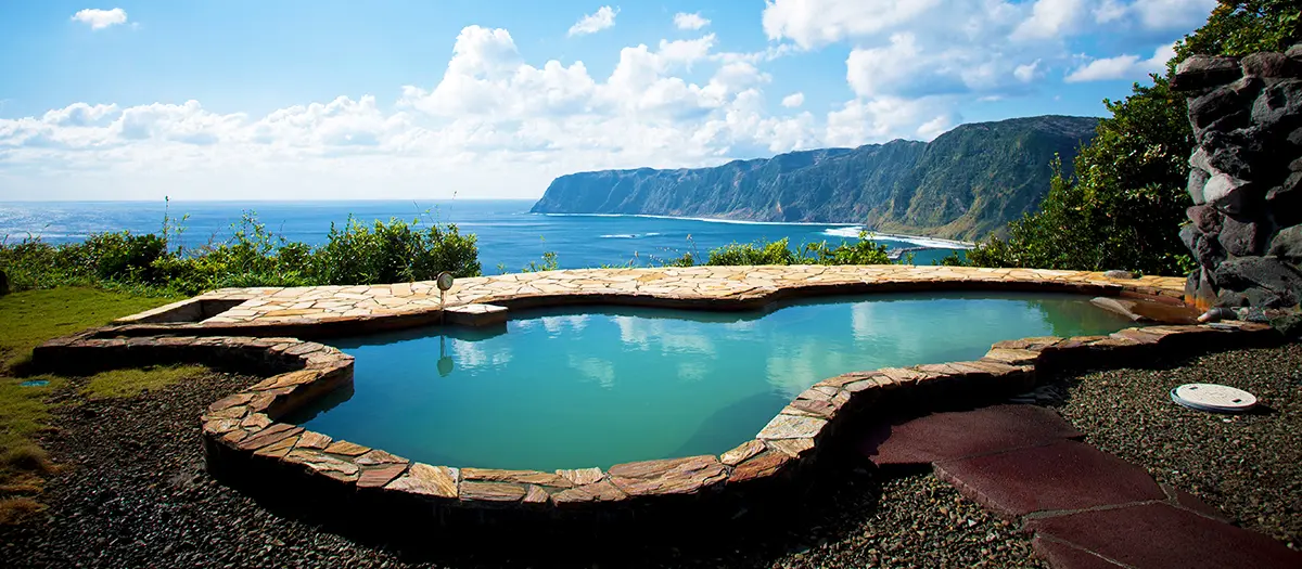 Miharashi-no-yu hot spring is situated next to the ocean on Hachijojima—the southernmost island of the seven Izu islands, 300km away from central Tokyo,
