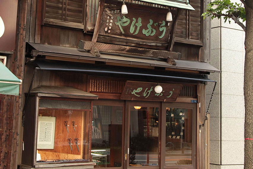 Ubukeya, a shop selling knives and sharp tools, was established in 1783 in Osaka and later opened premises in Edo, now known as Tokyo. The storefront of Ubukeya, which is located in Nihonbashi Ningyocho, is a wooden structure that has an early Showa era feel to it—unchanged since it was built in 1927. This distinctive store stands out in a street full of modern buildings, and is a gateway to the enchanting world of Japanese knives.