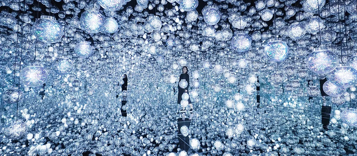 teamLab, Universe of Water Particles on a Rock where People Gather, © teamLab"teamLab Borderless" and "teamLab Planets" are both immersive art museums, but with different characteristics. They were both created by teamLab, an art collective consisting of a group of artists from many different disciplines. The museums feature vast, interactive spaces that visitors can walk through, looking at the installations that surround them. The exhibits in these installations use technology to display large works of art.