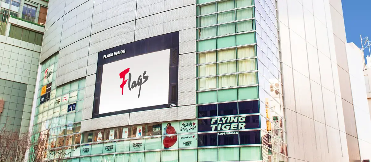 The Flags (Shinjuku Flags) department store is located just outside the Southeast Exit of Shinjuku Station. Flags features shops that are popular across generations, including fast fashion brands, such as Uniqlo and GU, along with specialty stores, such as AMERICAN RAG CIE.