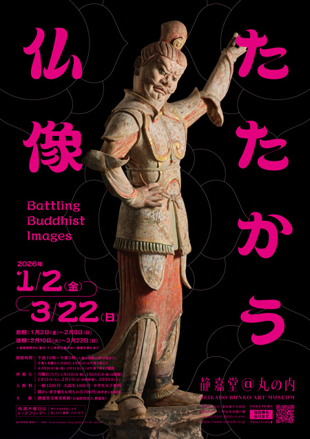 An exhibition with the theme of “battling Buddhas.” Featuring works such as the famous sculptures of the 12 divine generals that once stood in Jōruriji Temple, as well as tomb guardians from China’s Tang Dynasty with connections to similar figures developed in Japan.