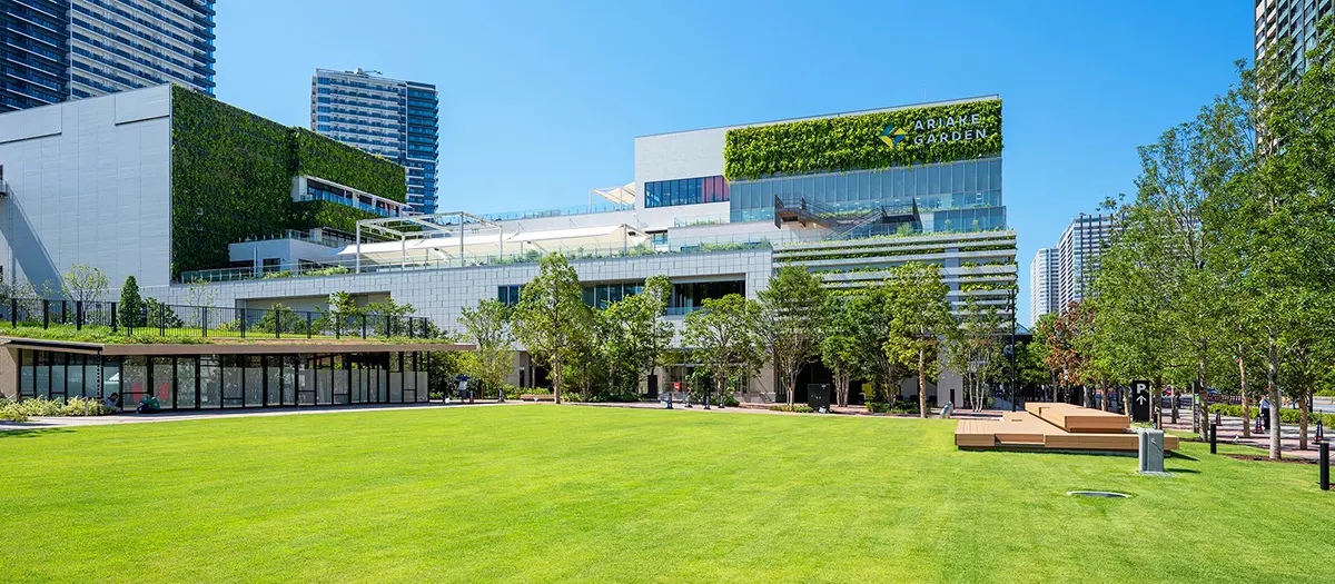 The space opened in 2020 in Tokyo Bay, close to Haneda Airport. You can easily reach Ariake Garden from the airport or central Tokyo. It's near the Rainbow Bridge and the famous Tsukiji outer market.