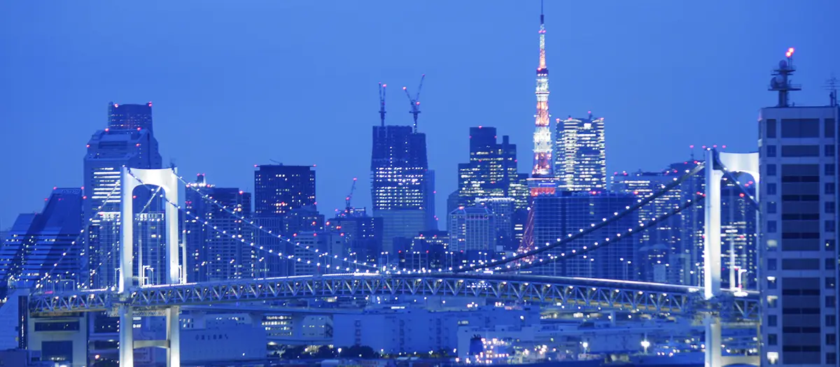 Admire the glittering skyline of Odaiba and Tokyo Bay from this uniquely shaped observation deck