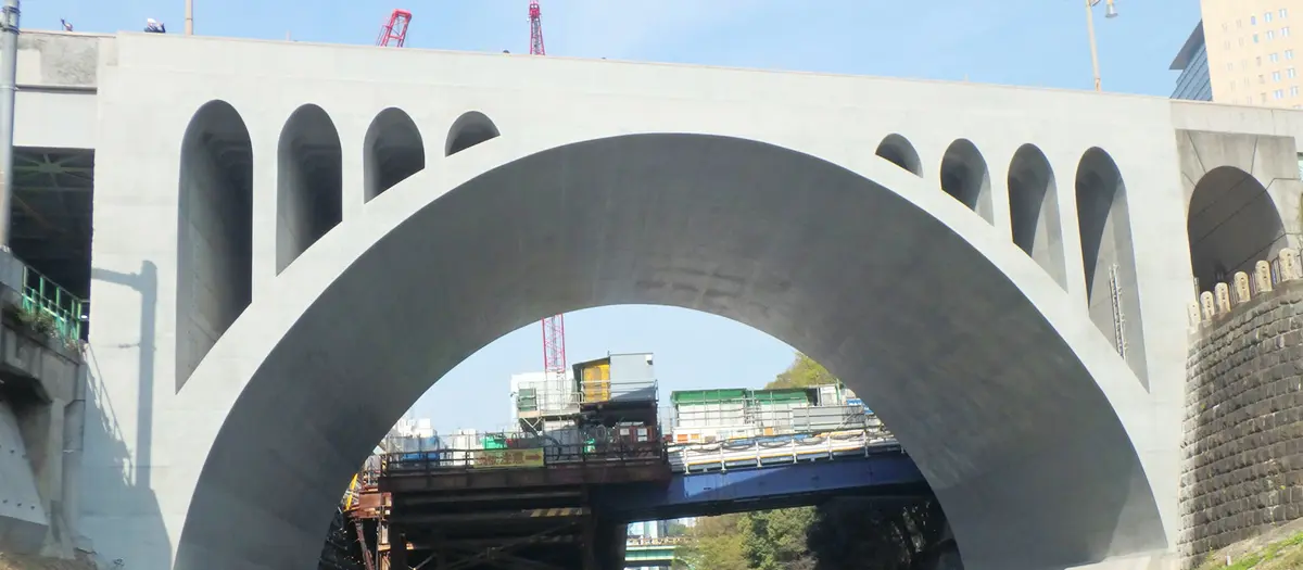 Hijiri-bashi Bridge is a modern arch bridge on the Kanda River. The grand arch is a Tokyo landmark and is the model for the Otonashi-bashi Bridge in Takinogawa, Kita City.