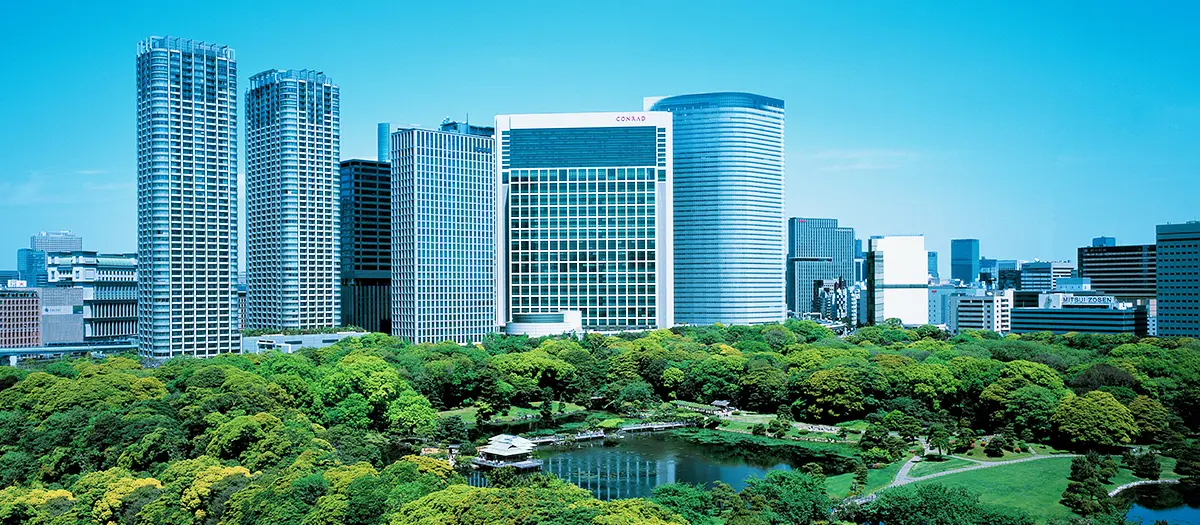 Located in the central but quiet heart of Shiodome is the luxurious Conrad Hotel Tokyo. Shimbashi Station, the chic Ginza shopping district, the outer Tsukiji fish market, and the historic Kabukiza Theatre offering traditional performances are all located within walking distance of the hotel, making it ideal for sightseeing.