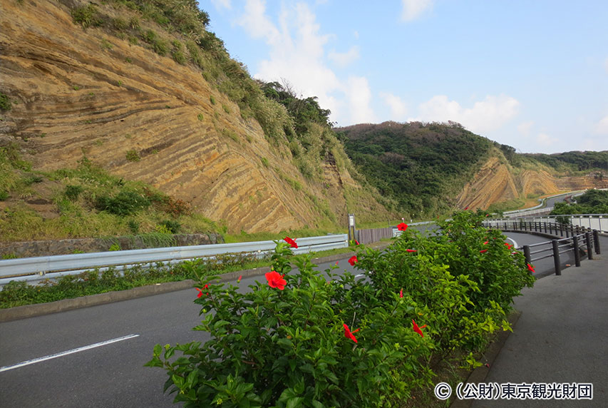 Strata built up through constant volcanic activity are visible along this nearly 630 m wall that is one of Izu Oshima’s major sights. Its appearance has led people to fondly refer to it as “Baumkuchen” or German tree cake.