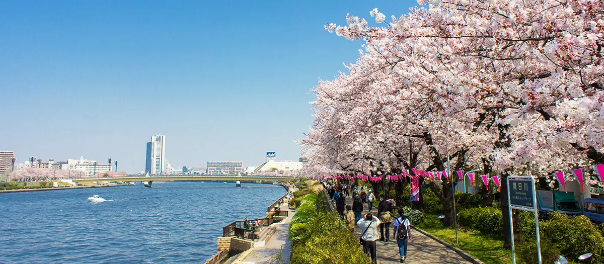 Only a few-minute walk from Asakusa Station lies Sumida Park—home to big annual firework displays and cherry blossom viewing events. You can take long walks along the Sumidagawa River with a generous view of Tokyo Skytree.