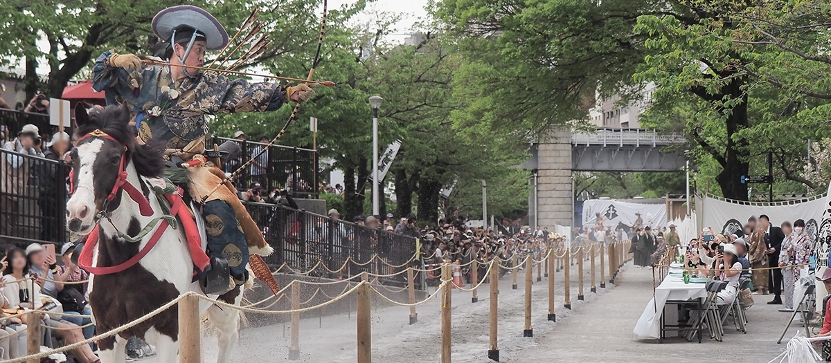 During the Edo period (1603-1867), Asakusa-style yabusame (horseback archery) was held as a New Year's display at Asakusa-jinja Shrine. Today, many traditional events are still held in Taito City, and this yearly archery event is one of them. Archers shooting and hitting targets from horseback look like heroic figures in a scene from a woodblock print of days gone by. Those that successfully hit three targets are awarded a prize during an elegant ceremony. There will also be a demonstration of kusajishi, the traditional practice method of shooting at a deer-shaped target made of grass.