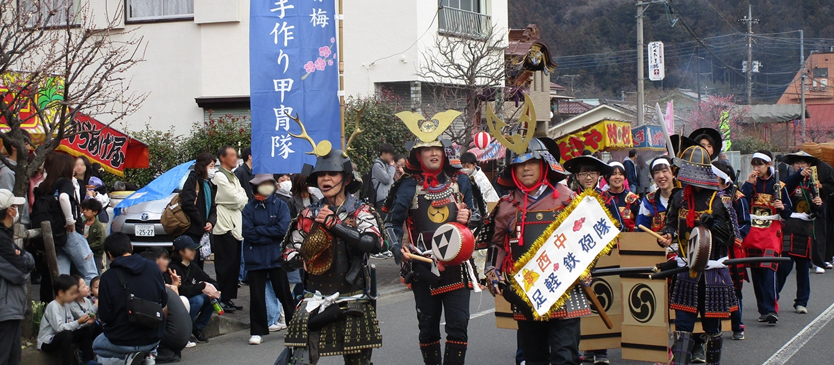 In addition to enjoying traditional hayashi performances (local music performed on traditional Japanese instruments) and lion dances, you will have a chance to see a parade featuring samurai warriors wearing handmade helmets and armor. Other attractions include the lively Koenji Awa Odori dance, organized by Suginami City, and a performance by Japan Aviation High School Ishikawa's dance club, whose members have been sheltering in Ome since the Noto Peninsula earthquake.