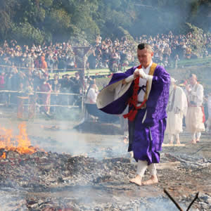 Held annually at Torikoe-jinja Shrine, this Shinto tradition dates back centuries. Decorations bought for the New Year are burned on a bonfire—an act known as "tondo-yaki." It's said that eating mochi cooked on this fire will offer protection from illness and disaster in the year ahead.