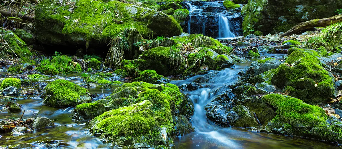 A peaceful mossy rock garden for escaping the summer heat