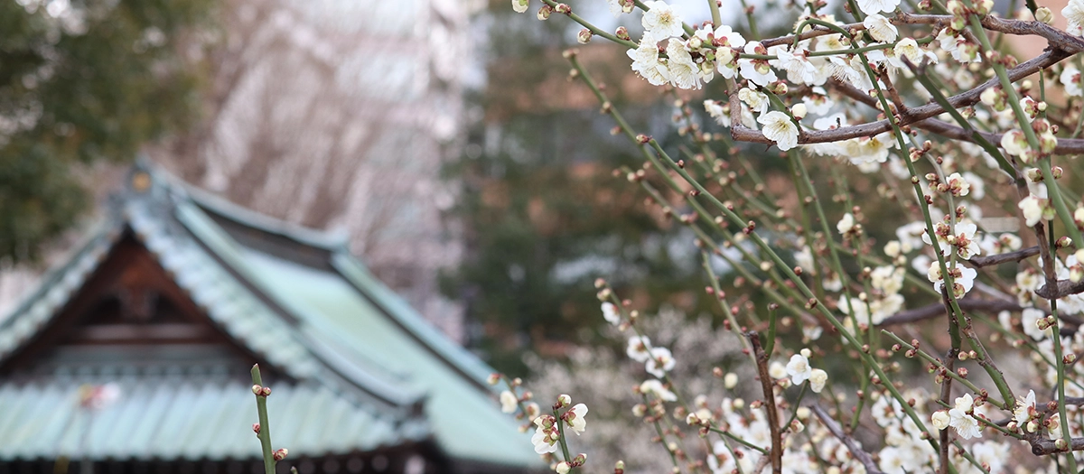 Yushima Tenmangu Shrine is also a popular spot for students wishing to pass exams, because Sugawara no Michizane—an ancient scholar who became revered as the Shinto deity of learning—is enshrined here. Sugawara, upon his exile to the remote region of Kyushu, wrote a famous poem about his beloved plum blossoms at home. "When the east wind blows, flourish in full bloom, you plum blossoms! Even though you lose your master, don't be oblivious to spring."