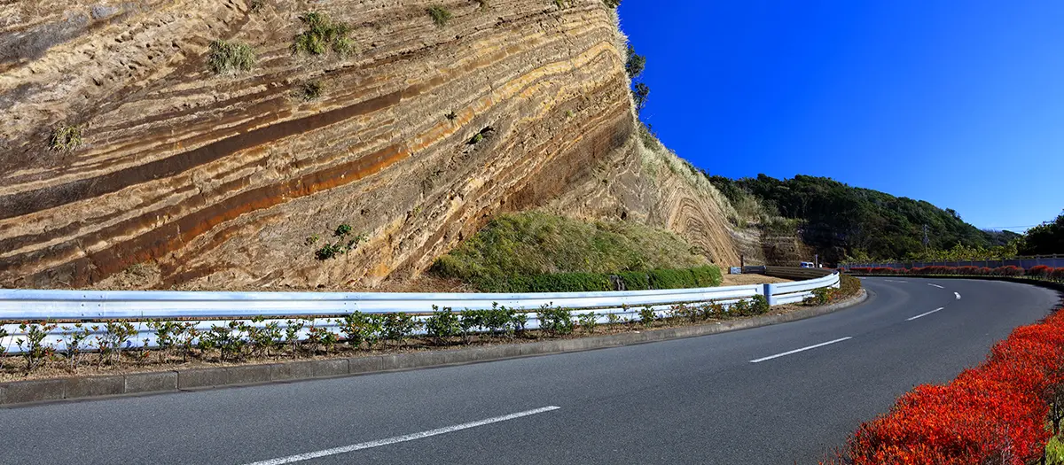 This striped formation is the result of volcanic ash and black pumice from eruptions past. Located on the southwestern side of Oshima Island, you can drive past it when you are on your way to the seashell museum Palais la Mer further south.