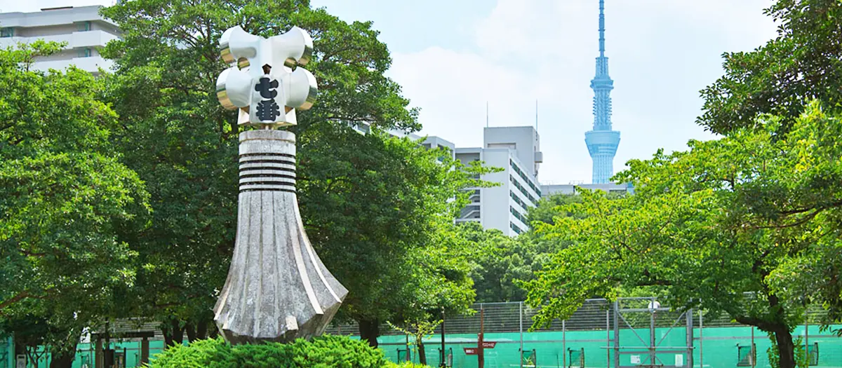 Higashi-Shirahige Park is a long, narrow park near to the Sumida River. If the weather is good, stroll for 40 minutes along the river from Asakusa to take a break in the inner-city greenery.
