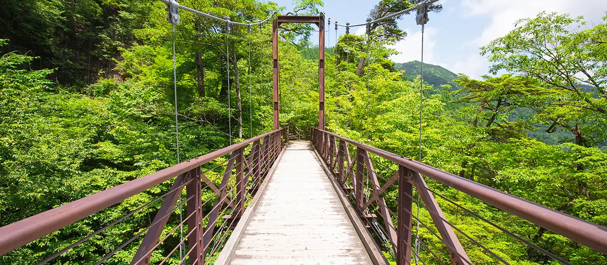 Enjoy the soothing sound of water falling at Mito Waterfall in Hinohara Village. This 30-meter waterfall is a short walk along the trail and can be viewed from a suspension bridge. Comfortable walking shoes are recommended. Nearby, you can reconnect with nature at Hinohara Tokyo Citizens’ Forest.