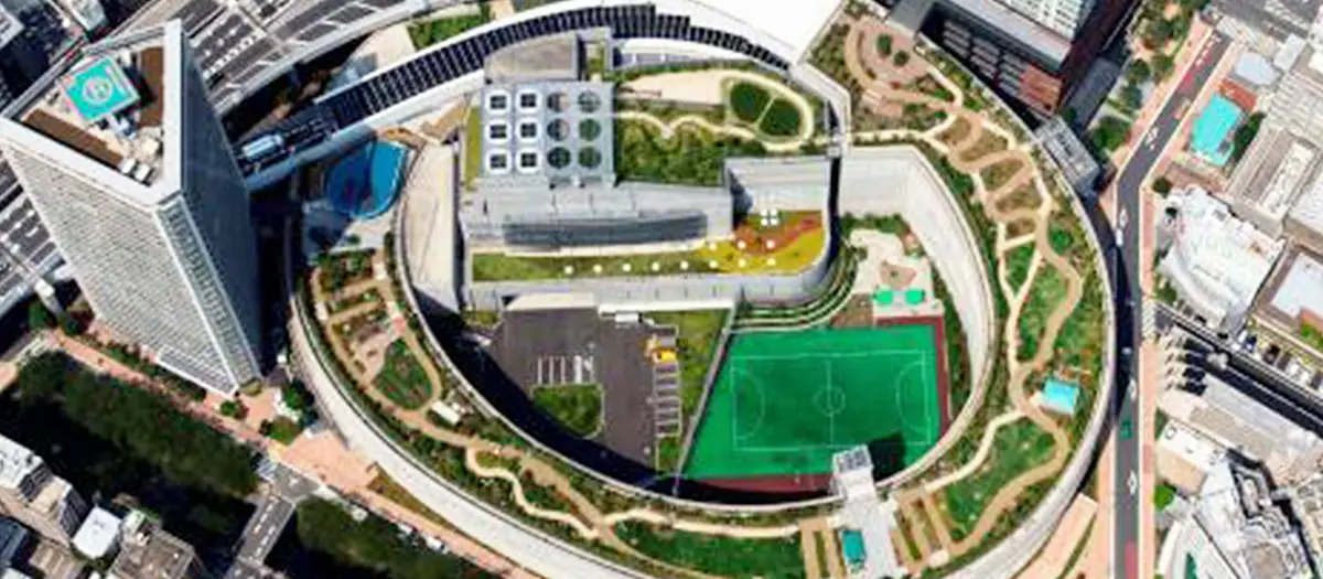 Built in a circular shape with a large 400m circumference, the Sky Garden is an urban oasis, located on the top of the Metropolitan Expressway.