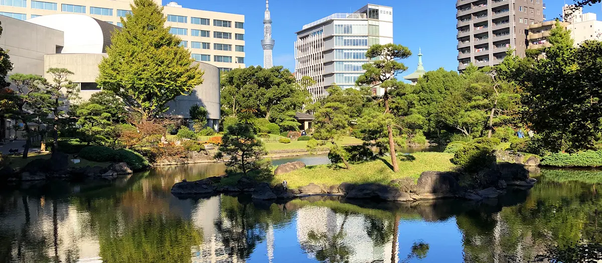 A quiet Japanese-style garden in the heart of the Ryogoku area