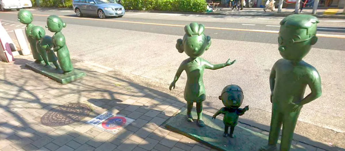 At four locations in the neighborhood of Sakura-shinmachi, you'll find 12 statues of characters from the nationally beloved comic strip series, Sazae-san. Take a stroll around Sakura-shinmachi to meet Sazae and her family!