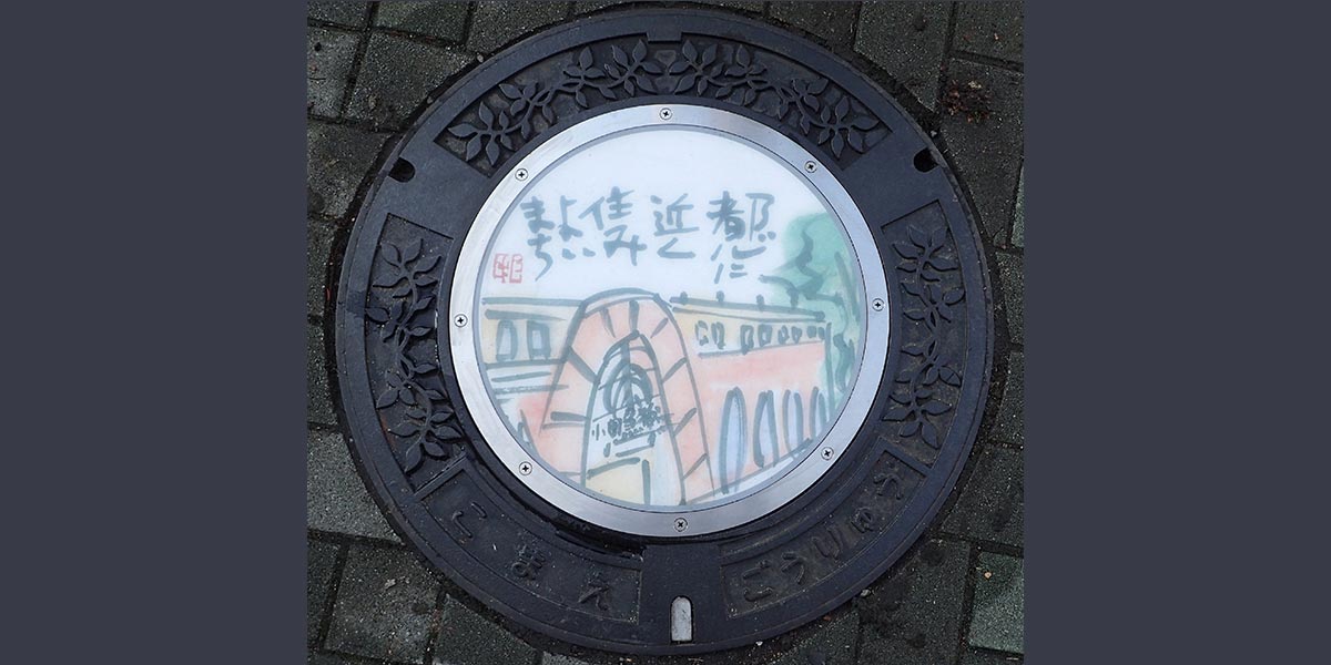 You will find manhole covers with designs of "etegami" (hand-illustrated postcards) in Komae City, where the first-ever etegami class in Japan was held. As the birthplace of etegami, the city promotes many projects and displays works related to etegami in various locations.