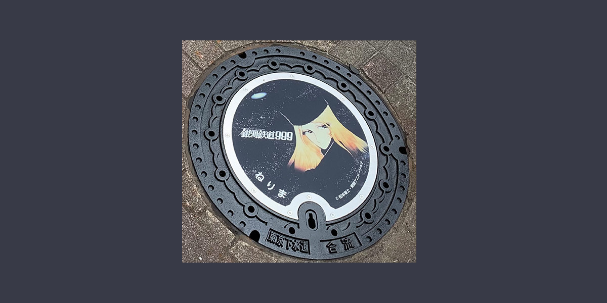 You will find a custom-designed manhole cover featuring Maetel from an anime and manga series Galaxy Express 999 in the Oizumi area. The area is closely linked to the series. For example, you see a life-sized statue of the "Conductor" at Oizumi-gakuen Station. The station uses the Galaxy Express 999 The Movie theme tune to notify passengers of train departures. Also, life-sized statues of popular anime characters related to Nerima Ward, including Maetel, welcome you at the "Oizumi Anime Gate" by Oizumi-gakuen Station North Gate. Check out the shopping street near the station as well. It was named "Yumaetel" with the cooperation of Leiji Matsumoto, the creator of Galaxy Express 999.