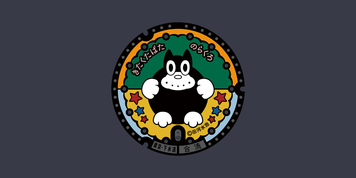 The design of this manhole cover is based on Norakuro (real name: Kurokichi Norainu), the protagonist of the manga Norakuro. The manga’s creator, Suiho Tagawa, lived in Tabata in Kita City, Tokyo, from 1929 to 1931 before releasing Norakuro. Its depiction of a character carving out his own path in life despite harsh circumstances won it substantial popularity, making this one of the foremost manga of the early Showa period. Look for Norakuro in the “Tabata writers’ and artists’ village,” an historic area inhabited by many writers and artists in the Meiji and Showa periods.