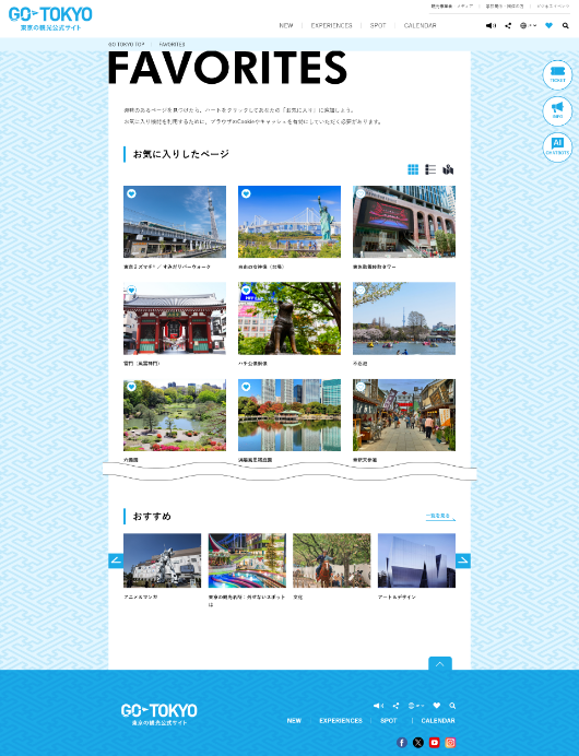 Your favorites page also introduces other events and attractions based on your general interests and registered favorites. Don't miss out on these other Tokyo spots!
