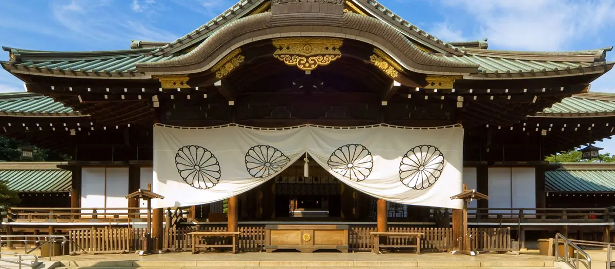 Yasukuni Shrine was founded in year 2 of the Meiji era (1869). 2,466,000 spirits of those killed in battle from the end of the Edo era through the Pacific War are enshrined here. The museum on the grounds displays wills and relics of those enshrined and related historical materials. It's long been a famous spot for cherry blossoms, with around 500 cherry trees planted here. Every year, the Tokyo District Meteorological Observatory visits the grounds to make their cherry blossom forecast.