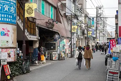 If you're looking for vintage clothing or antiques, the neighborhood of Shimokitazawa is the place to go. Browse the clothing racks of New York Joe Exchange, in a building that used to be a public bath. For everyday items and knick-knacks that make good souvenirs, Antique Life Jin and Tokyo Retro a.m.a. are worth checking out.