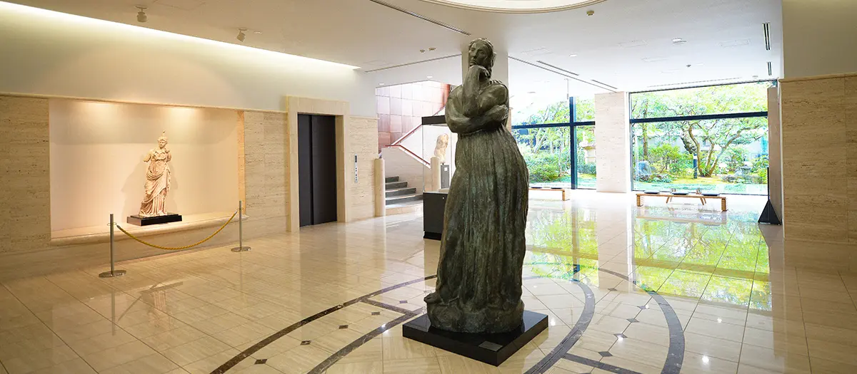 The permanent exhibits include art from ancient Egypt, Greco-Roman sculptures, ancient Asian sculptures, as well as modern art. The temporary exhibits feature a rotating selection from the museum's collection of 1,800 pieces of eastern ceramics and western paintings. Highlights include works by Monet, Renoir and Maruyama Okyo. The museum is known for its impressive collection of ceramic pieces.