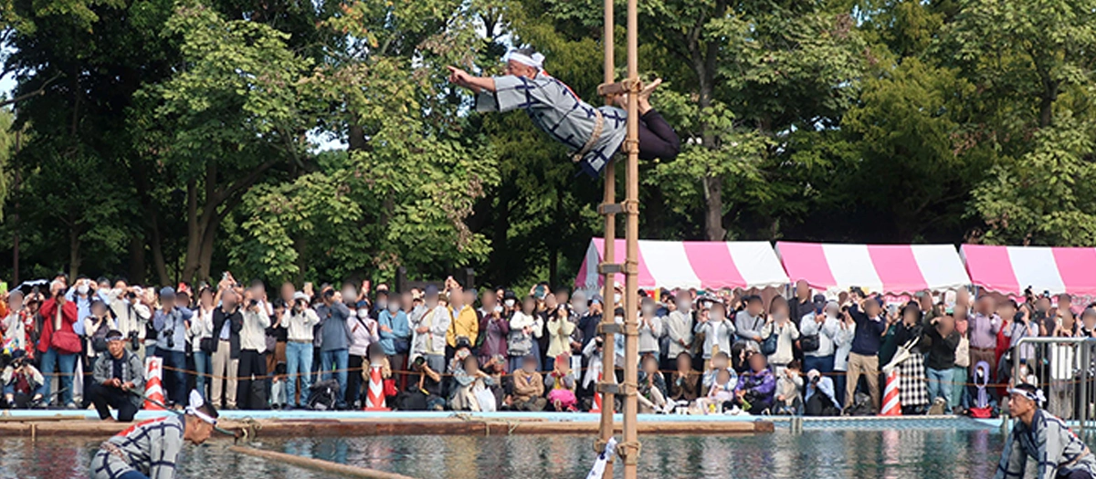 Each year, as part of its residents' festival, Koto-ku holds the “Koto-ku Folk Performing Arts Festival” in Kiba Park, to keep up the traditions of local folk art during which the public can view the “Kiba no kakunori.”